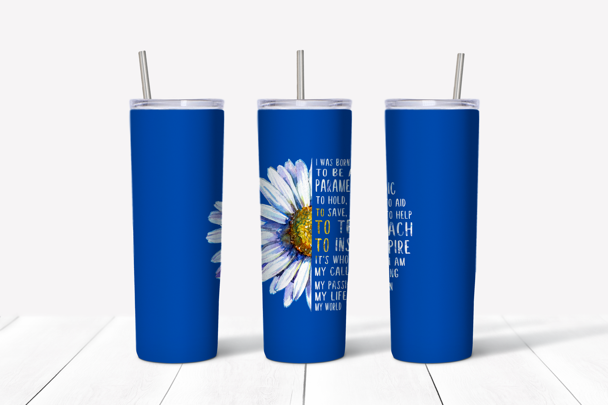 This is a gorgeous 20 oz sublimation tumbler that is double-insulated. TAT is typically one-two weeks after ordering since they are made-to-order. Each tumbler comes with a plastic lid and straw.